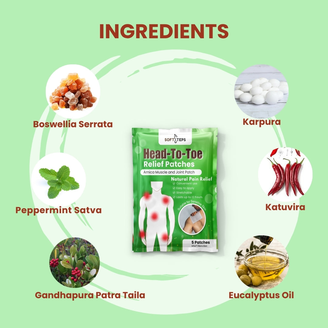 Tired of applying greasy balms or popping pills for everyday aches and pains? Introducing SoftSteps Head-To-Toe Relief Patches – your all-natural, non-messy, and highly effective solution to pain, swelling, and stiffness.